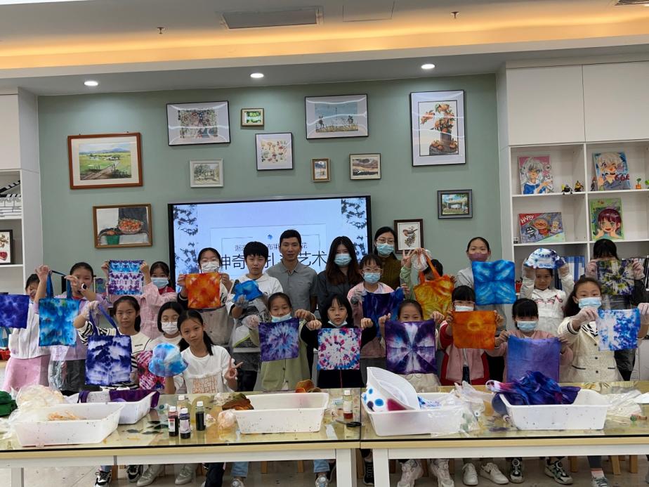 创意设计学院与松山湖教育管理中心联合开展的美育科普系列活动顺利开展。2022年11月6日,东莞职业技术学院创意设计学院主讲教师陈若棋、教学副院长亓晓丽带领学生助理与东莞松山湖青少年活动中心携手开展“邂逅扎染,布里生花”美育科普课程,让学生感受非遗,爱上非遗,以此传承和弘扬传统民族文化。