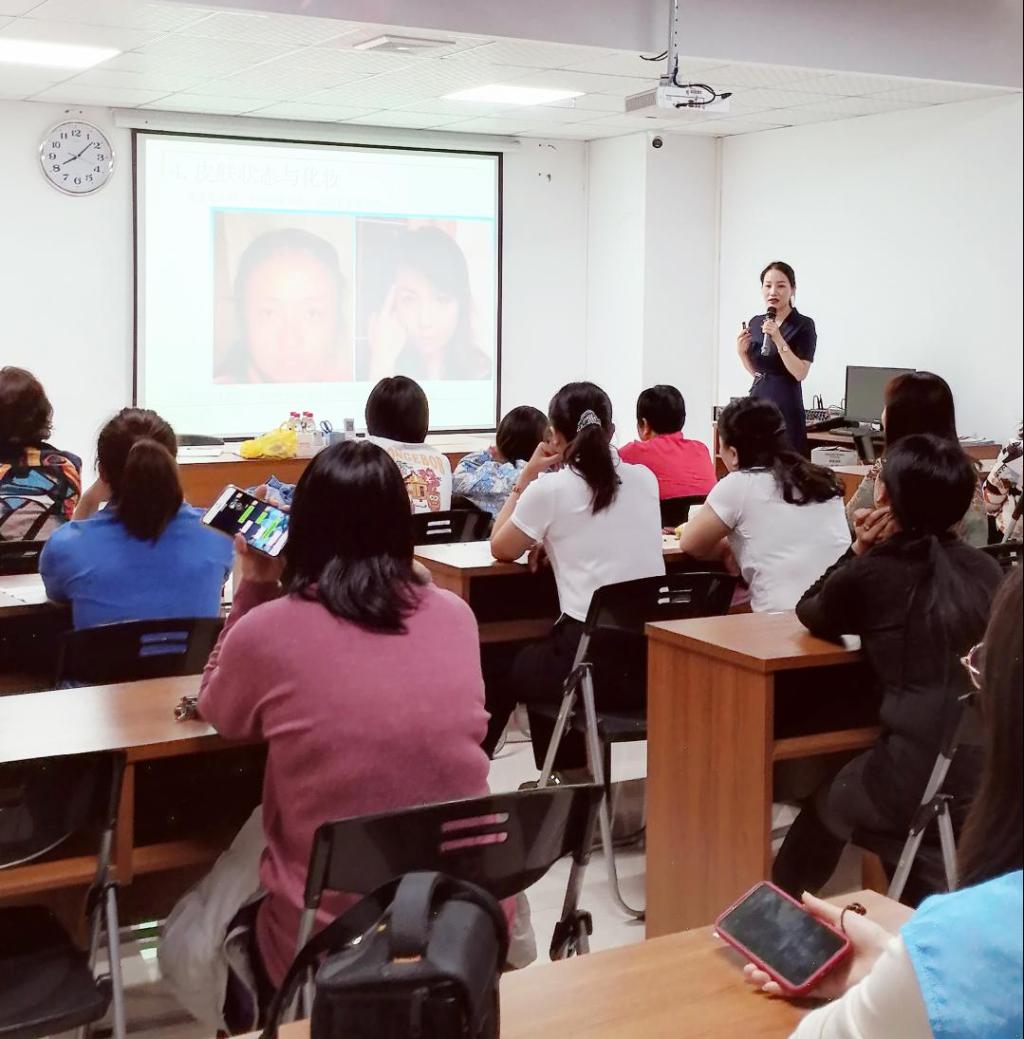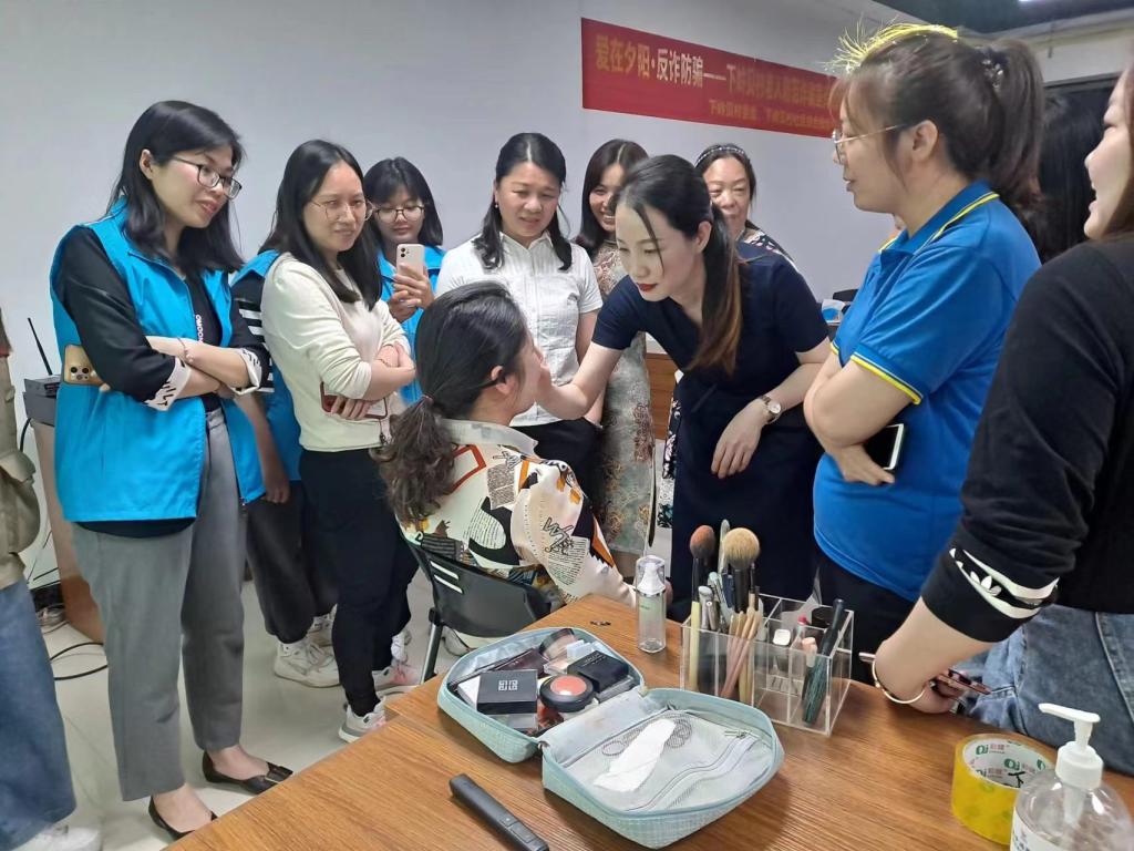 任老师从化妆的目的和原则开始讲解,一步一步教社区居民学会化妆,分享独家化妆技巧。整个活动过程中,居民表现出浓厚的兴趣,纷纷感叹化妆之后的变化太大了。任老师将自己多年实践的技巧分享给大家,并且亲自实践化妆过程,获得了居民们的一致好评。