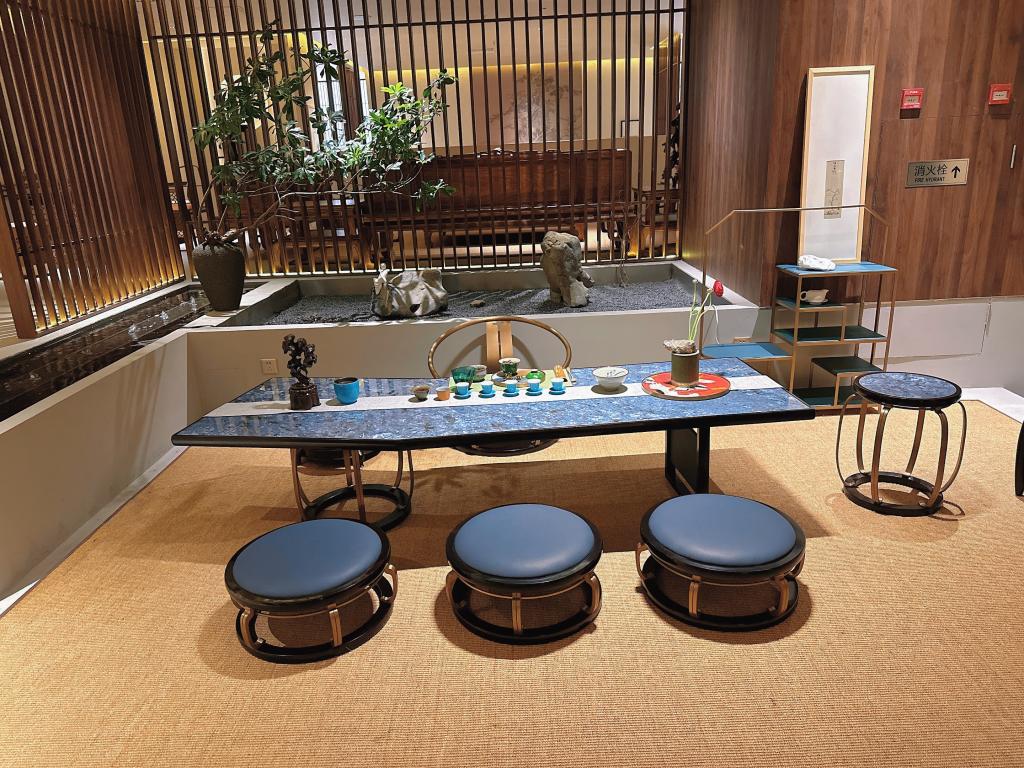 我院蒋海霞教师的“闲茗”茶室系列家具受邀参加了本次展览,受到广泛的好评和关注。作品以中国传统茶文化为核心,结合当代新中式美学和社会生活展开设计,塑造新的茶饮文化生活方式。该作品已与苏州客邦家具有限公司合作完成从设计作品到商品的转换落地,并在佛山罗浮宫家具博览中心等原创家具馆进行售卖。