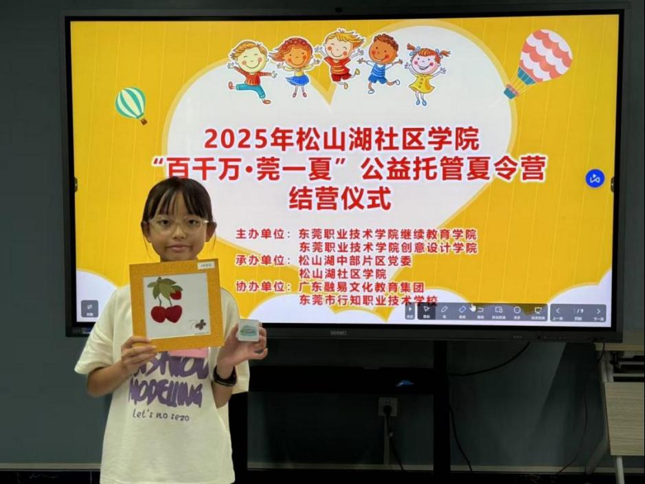 松山湖中部片区“百千万·莞一夏”公益托管夏令营活动于8月15日在东莞职业技术学院圆满落下帷幕。本次为期5天的活动,旨在落实省市镇“百千万工程”决策部署,切实解决松山湖中部片区双职工家庭暑期“看护难”问题,为40名7至12岁的青少年打造了一个融合学科启迪与艺术熏陶的精彩暑期。