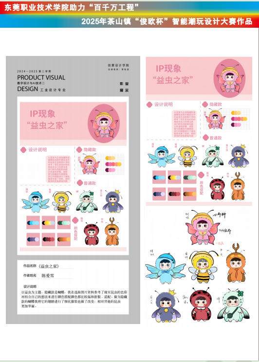 为确保评审的专业性与公正性,大赛组建了一支实力强劲的评委团队。团队成员包括东莞市俊欧玩具有限公司的销售经理与专业设计师,他们凭借在玩具行业丰富的市场经验与前沿设计理念,为评审带来产业一线的视角;同时,东职院产教融合办副主任和创意设计学院教师也参与其中,他们结合教育教学规律与学院专业特色,从学术与人才培养的角度对作品进行考量。