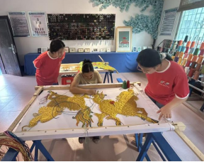 2025年暑期,东莞职业技术学院“百千万工程”潮绣数智时尚设计团队走进清远、东莞等地,开展以“非遗创新·数智赋能”为主题的学研实践活动。团队深入清远连山嘉田锦绣合作社,近距离探访壮族刺绣技艺,系统学习“铺、垫、钉、贴、缀”等传统针法,亲身感受一针一线中所承载的文化底蕴与匠人精神。