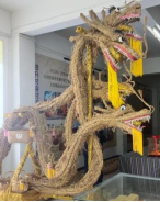 在非遗基地展厅中,多条造型生动、气势恢宏的草龙迅速吸引了同学们的目光。通过文化馆讲解员的系统介绍,团队了解到“舞草龙”不仅是一项传统手工艺,更蕴含着风调雨顺、吉祥安康的美好寓意,是东莞人民共同的文化记忆与乡土情感的象征。