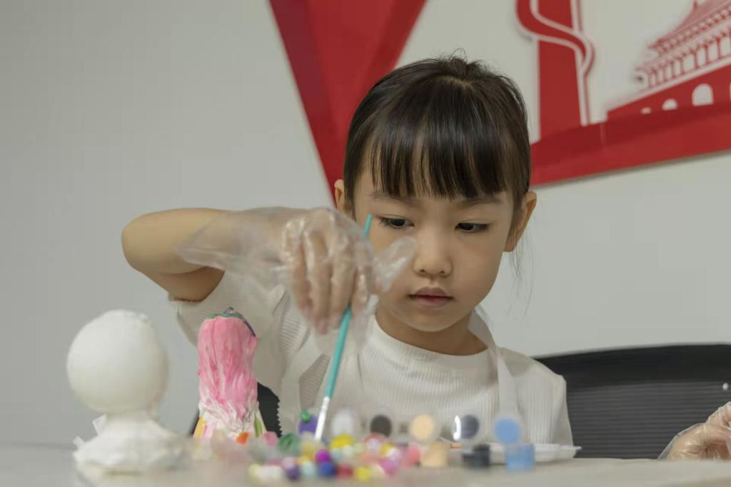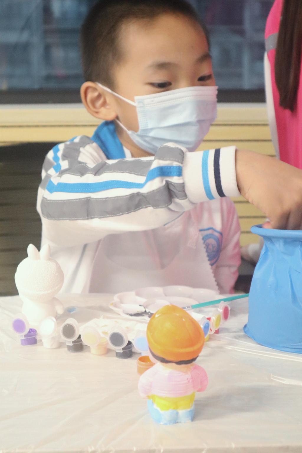 活动开始后由志愿者向小朋友们介绍活动的内容与操作方法,带领小朋友们学习石膏娃娃绘色的基础,并分享了自己提前完成的作品。分享结束后小朋友们领取自己喜欢的石膏娃娃开始进行彩绘,在志愿者的指导下,给石膏娃娃涂上自己喜爱的颜色,绘制出每个人独一无二的石膏娃娃。